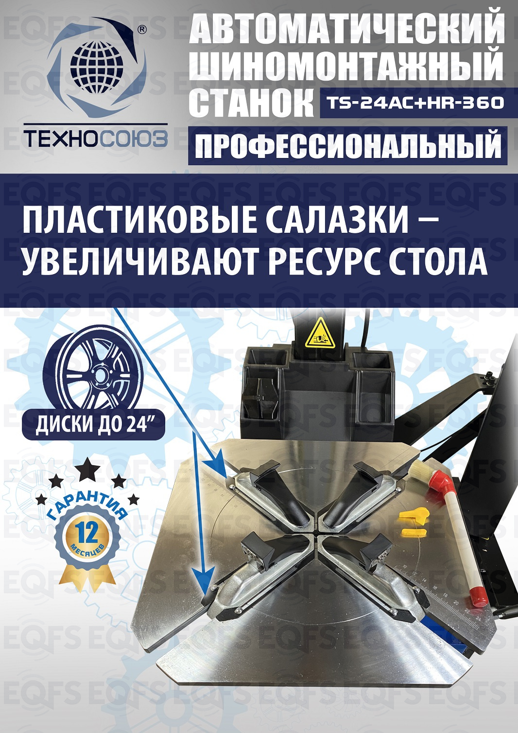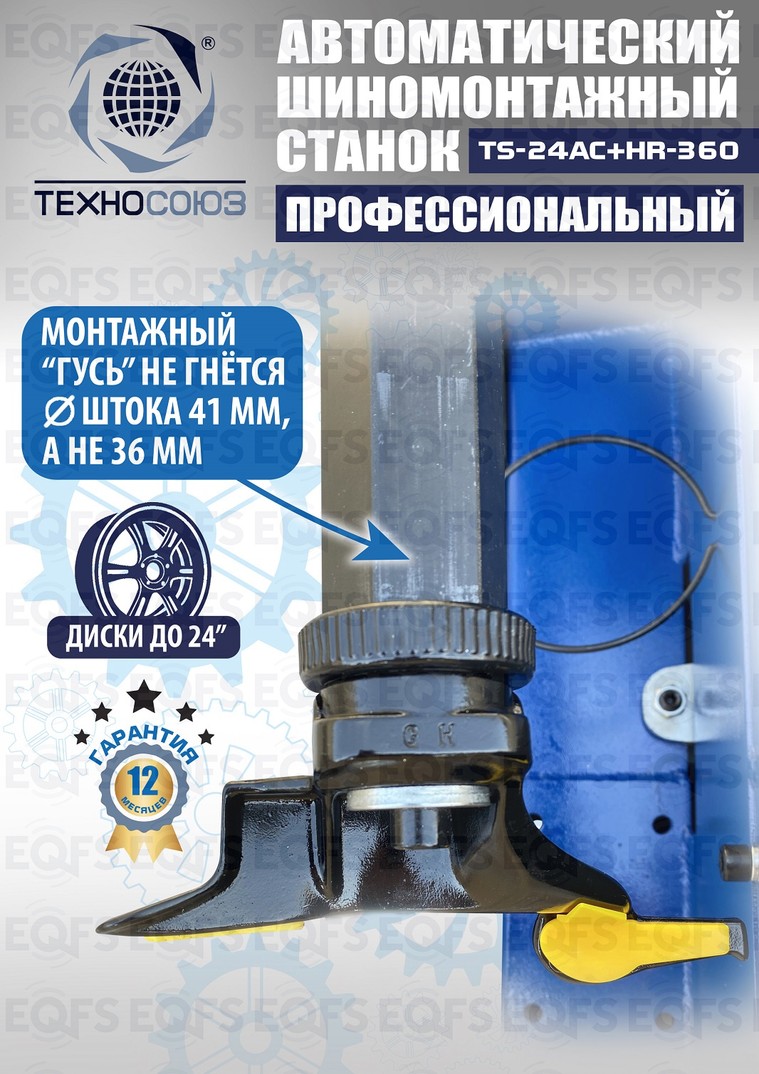 Автоматического шиномонтажного стенда TS-24AC+HR-360. В комплекте взрывная подкачка + третья рука для работы с низкопрофильными шинами и RanFlat! Для колес легковых автомобилей, легких грузовиков, микроавтобусов и коммерческой техники. Для дисков: внешний 10÷21”, внутренний 12÷24”. Напряжение 220/380В. Гарантия 18 мес. – наш монтаж, 12 мес. – самостоятельная установка.