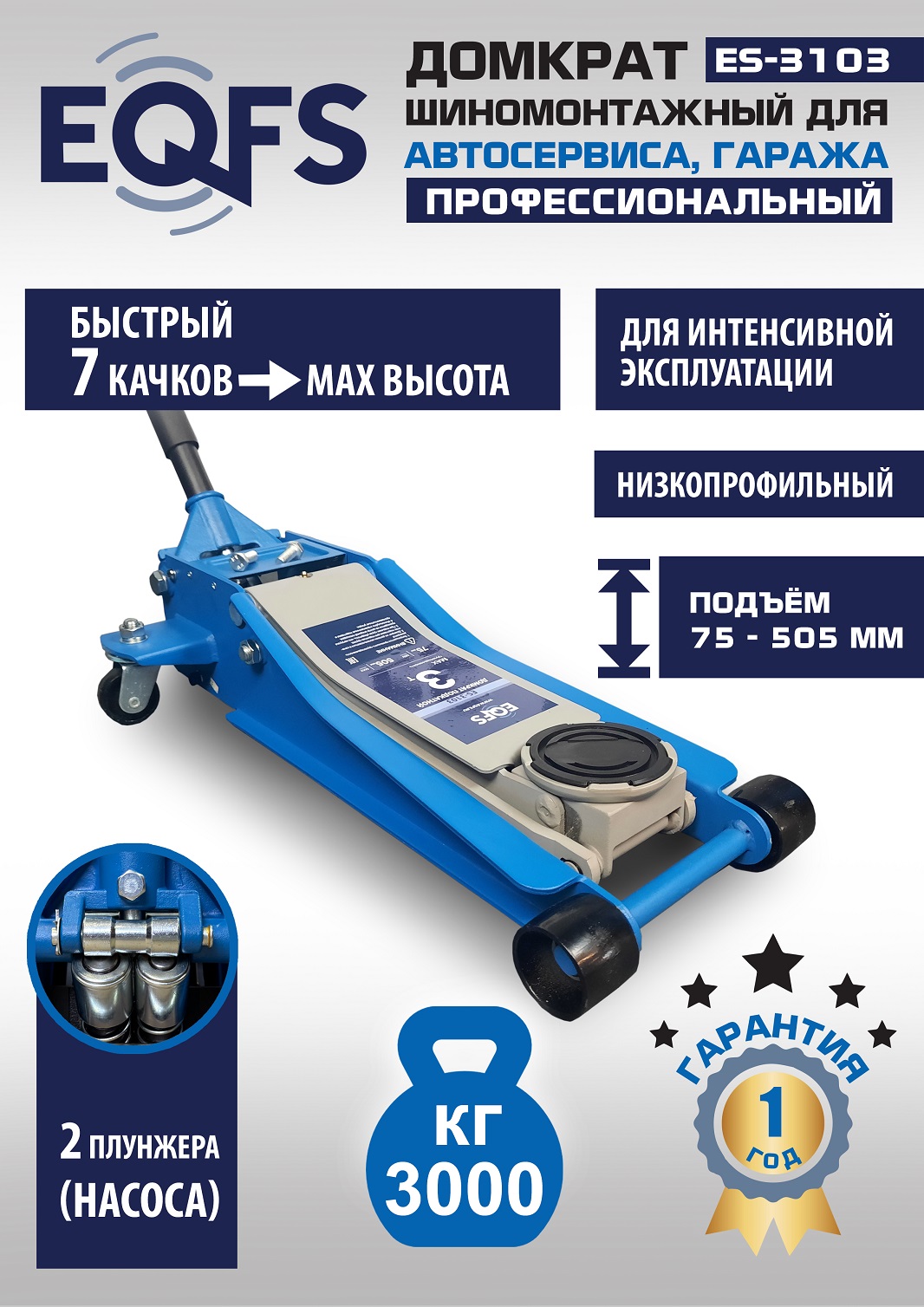 + низкопрофильный подкатной домкрат г/п 3т. Высота подъема мин / макс - 75-505 мм.